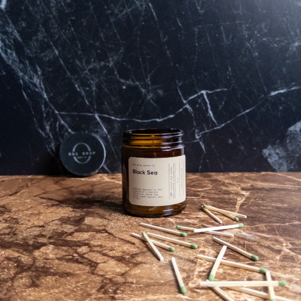 Immerse yourself in the essence of a moonlit shoreline, where the waves crash against dark cliffs. Salty, oceanic accords combine with dark musk and sandalwood to fill your space with this balanced, airy scent.